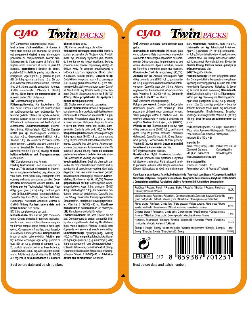 INABA Twin Poulet en bouillon pour chats 24x40g