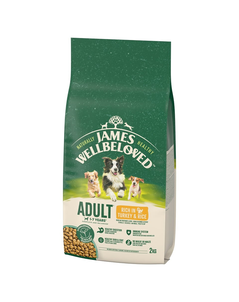 La recette de ces croquettes a été soigneusement élaborée pour répondre aux besoins des chiens adultes. Cet aliment riche en dinde et en riz contient des prébiotiques naturels qui favorisent une bonne digestion. Il contient des ingrédients naturels sélectionnés sans arômes artificiels, colorants ou antioxydants ajoutés. Nous avons ajouté à la nourriture James Wellbeloved Adult des vitamines et des minéraux dont votre chien a besoin pour rester heureux, en bonne santé et plein de vie.