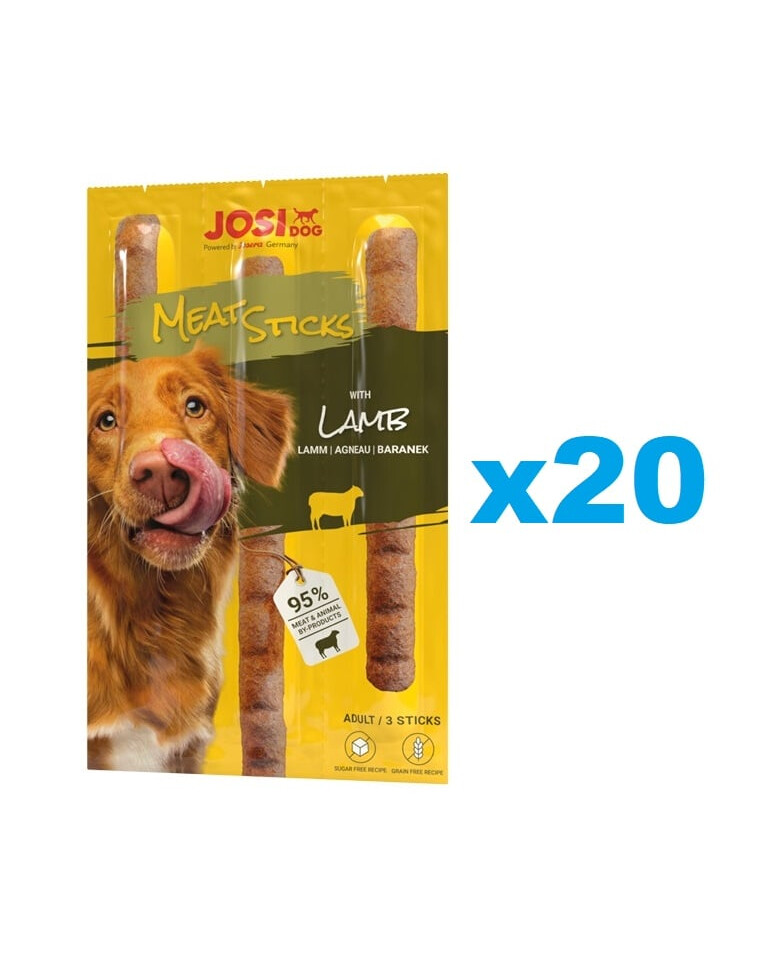"Super chien, voici tes bâtonnets de viande JosiDog à l'agneau ! C'est ce qu'aiment nos animaux à quatre pattes : des friandises délicieusement charnues et savoureuses, à l'odeur appétissante. Ces friandises molles pour chiens adultes ont tout pour plaire aux animaux à quatre pattes. Et ce n'est pas tout : grâce à leur forme spéciale, les friandises d'entraînement sont faciles à portionner et conviennent donc pour choyer, récompenser et satisfaire les petites faims.