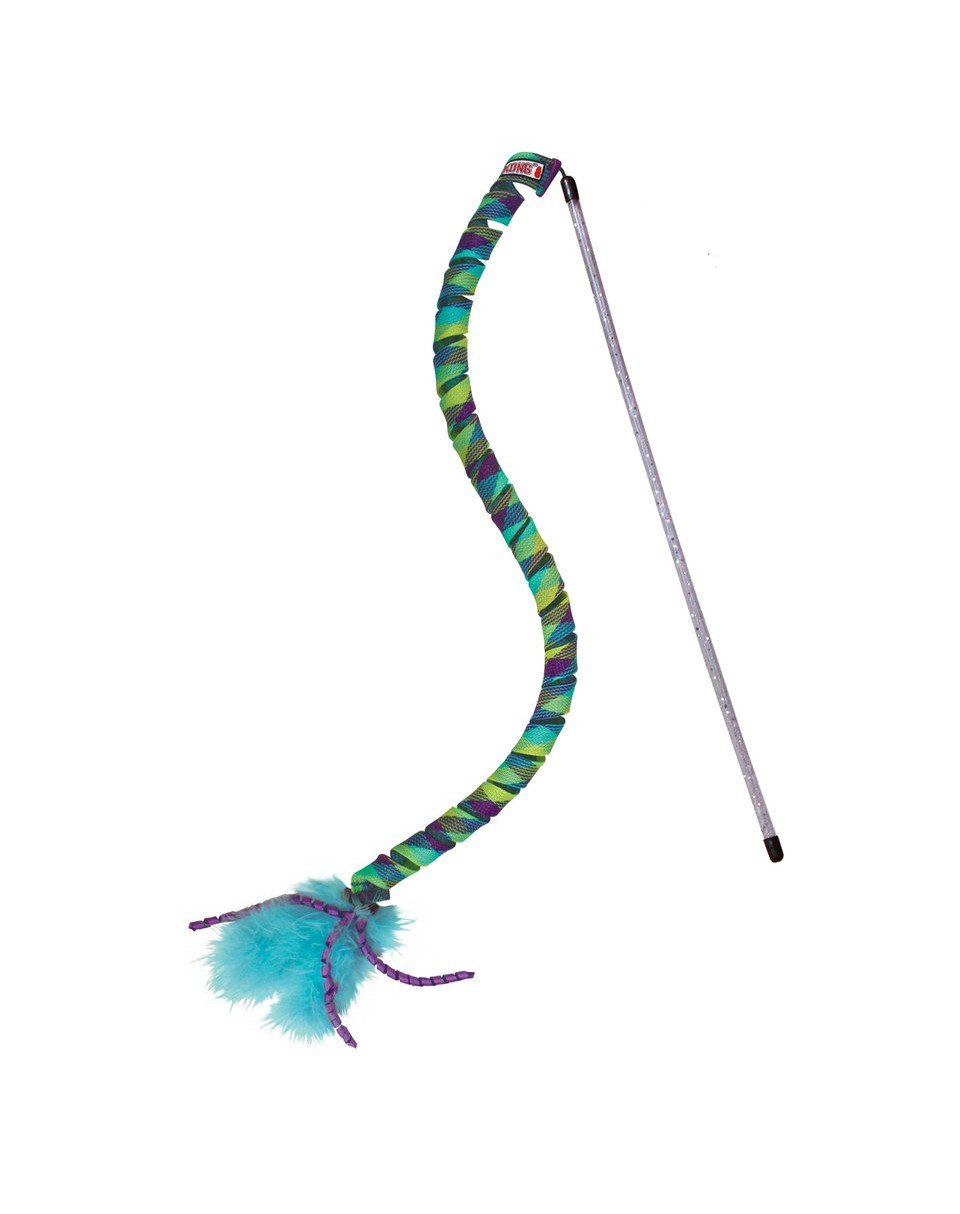 La forme en tire-bouchon de l’élastique au bout de la baguette scintillante est la clef du succès pour amuser les chats. Lorsque votre chat bondit sur la cible de plumes et de rubans, la détente immédiate de l’élastique tissé dans les spirales produit une série de réactions très satisfaisantes et l’incite à une course follement amusante.