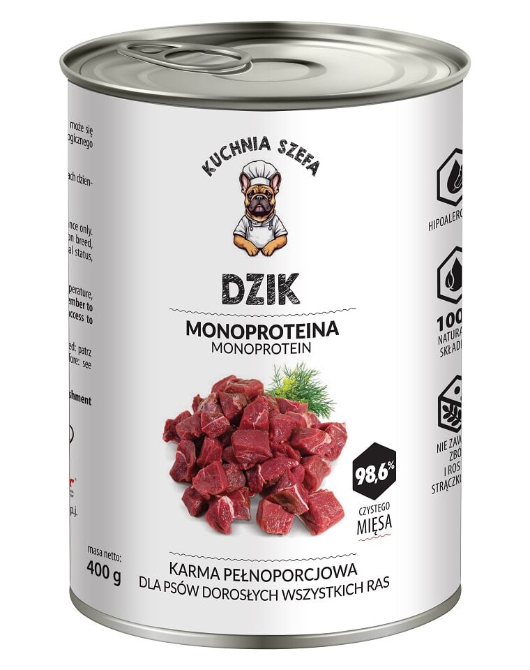 KUCHNIA SZEFA Dzik Monoproteinowa karma dla psów wszystkich ras 400 g