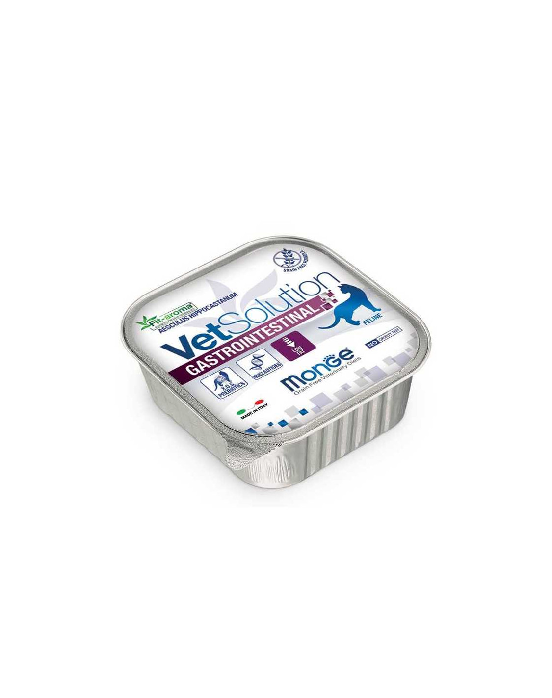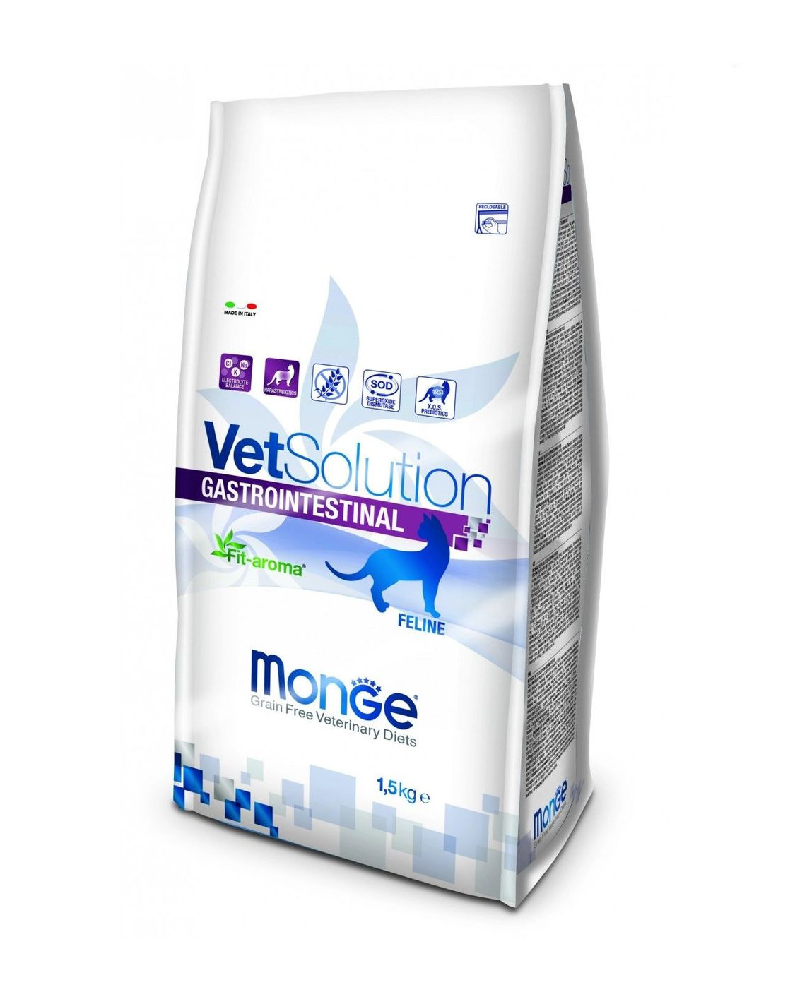 Croquettes Vétérinaires. La formule Fit-Aroma de MONGE VETSOLUTION FELINE GASTROINTESTINAL contient un extrait naturel de marron d'Inde, dont les effets antispasmodiques ont été démontrés par la modulation des récepteurs cholinergiques et des canaux calciques au niveau intestinal. Le phyto-arome de MONGE VETSOLUTION FELINE GASTROINTESTINAL a des propriétés astringentes qui ralentissent les mouvements péristaltiques intestinaux et améliorent l'action des enzymes digestives.