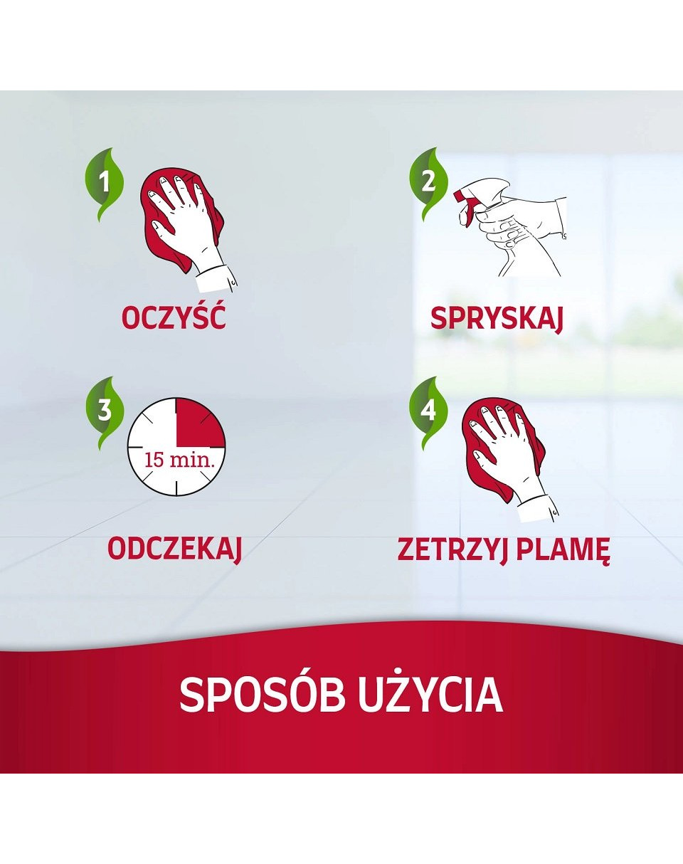 Taches difficiles : frottez doucement la zone de la tache avant d'utiliser le produit et laissez agir pendant 15 minutes.