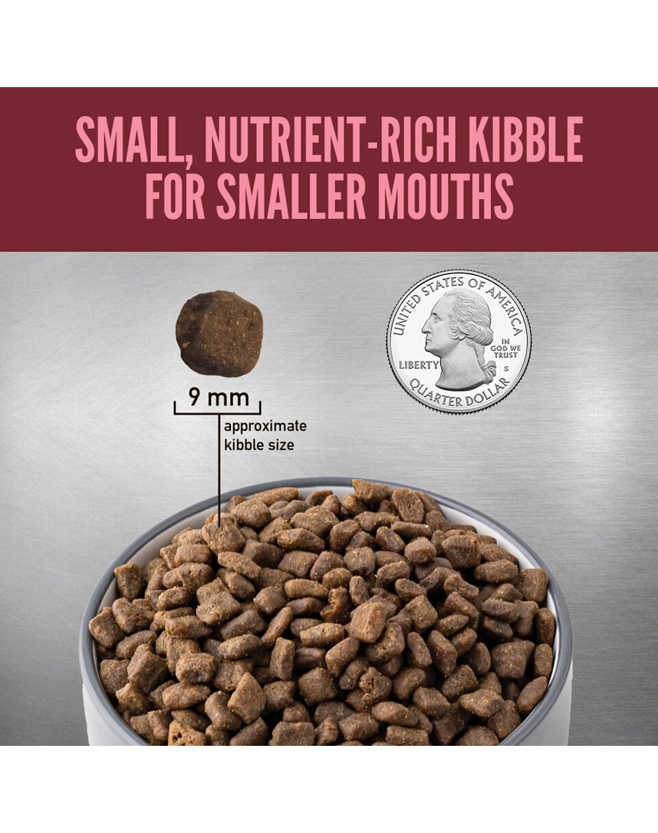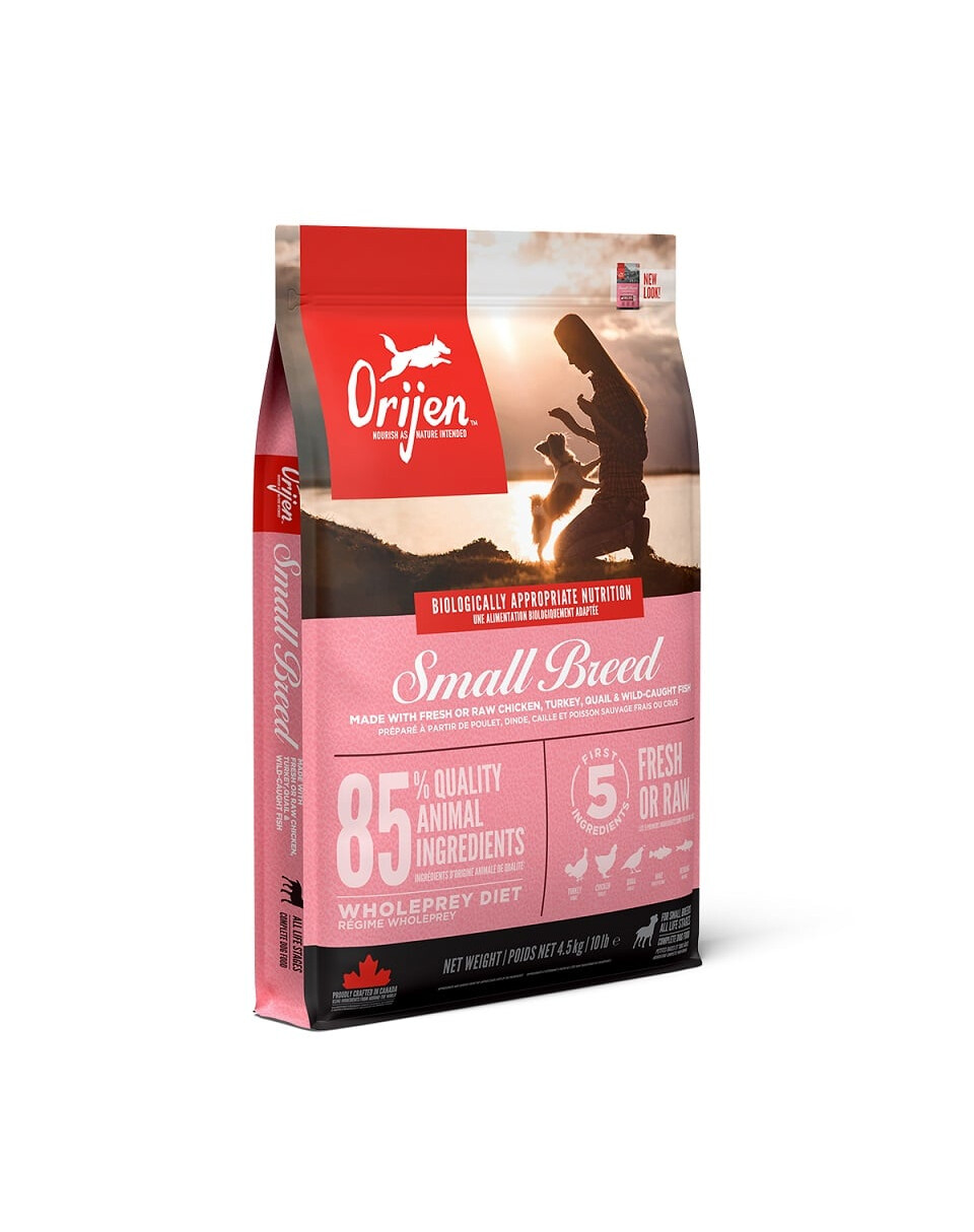 Orijen Small Breed est riche en dinde, poulet, caille, œufs de poules et poisson. Cet aliment a été spécialement formulé pour les petits chiens. Les chips de petite taille sont plus faciles à consommer pour les petits chiens. Les ingrédients carnés de la formule pour petites races sont issus d'espèces animales de petite taille, reflétant le régime évolutif des chiens de petite race.