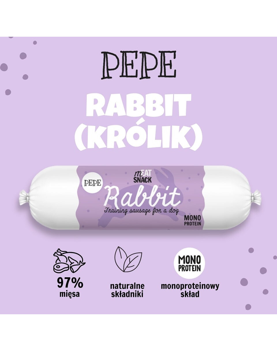 La saucisse de lapin PEPE Meat Snack est le complément idéal à l'alimentation de votre chien !