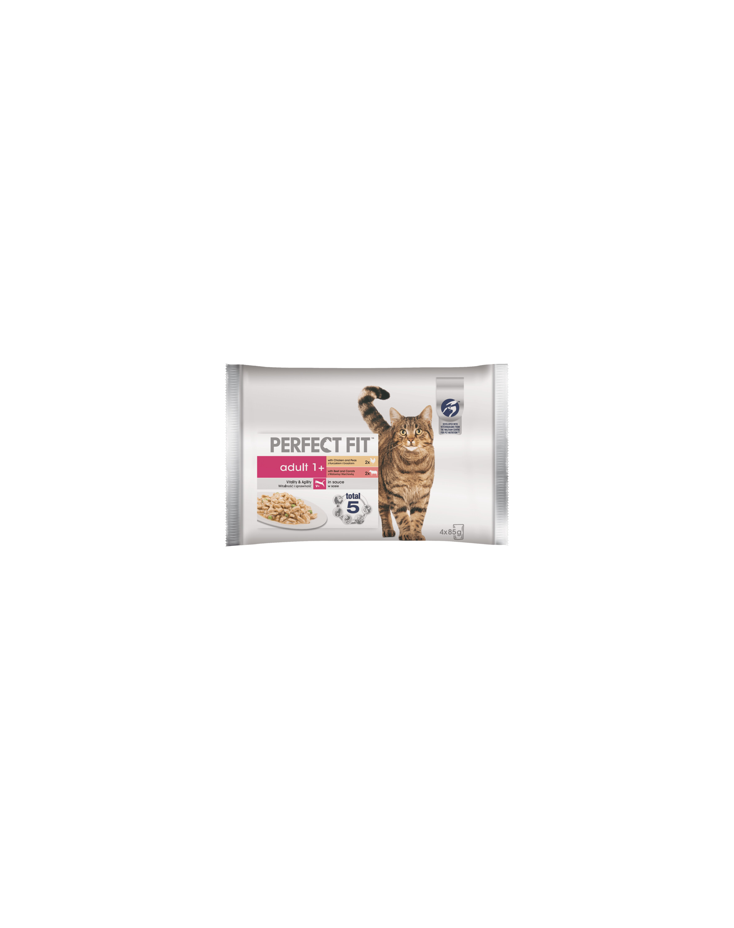 PERFECT FIT Adult saszetka 52x85g mokra karma dla kota w sosie z kurczakiem i groszkiem, z wołowiną i marchewką