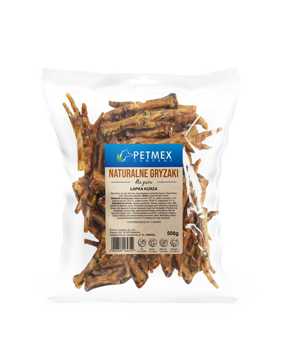 Petmex crée ses produits du début à la fin : les matières premières proviennent de fournisseurs fiables, sont de la meilleure qualité, sont traitées avec soin et sont ensuite transformées à l'aide d'une technologie moderne et fiable afin d'offrir le meilleur à nos animaux de compagnie. L'entreprise n'utilise pas d'exhausteurs ou de conservateurs chimiques. La production des produits à mâcher se fait sous contrôle vétérinaire. Un système HACCP est mis en œuvre dans l'usine.