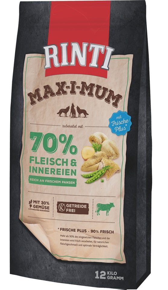 Rinti Max-i-Mum est préparé avec 65% de viande fraîche et d'abats frais. Cela correspond à plus de 90% des matériaux de viande utilisés. Cela favorise le goût naturel de la viande et l'utilisation de la nourriture. La teneur accrue en matières grasses assure un rapport équilibré entre les protéines et les matières grasses pour une digestion en douceur. Les chiens sont carnivores par nature, c'est pourquoi la nourriture Rinti Max-i-Mum contient une forte proportion de viande fraîche transformée selon un processus de production complexe et aucune céréale.
