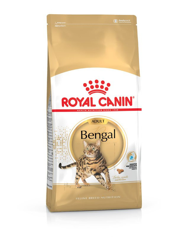 ROYAL CANIN® Bengal Adult a été exclusivement formulé pour répondre aux besoins nutritionnels de votre chat Bengal. Grâce à sa forte teneur en protéines et sa teneur en matières grasses adaptée, cette formule contribue à entretenir la masse musculaire de votre chat Bengal afin de préserver son mode de vie actif. Aliment complet et équilibré pour chats - Spécial chats adultes Bengal - À partir de 12 mois.