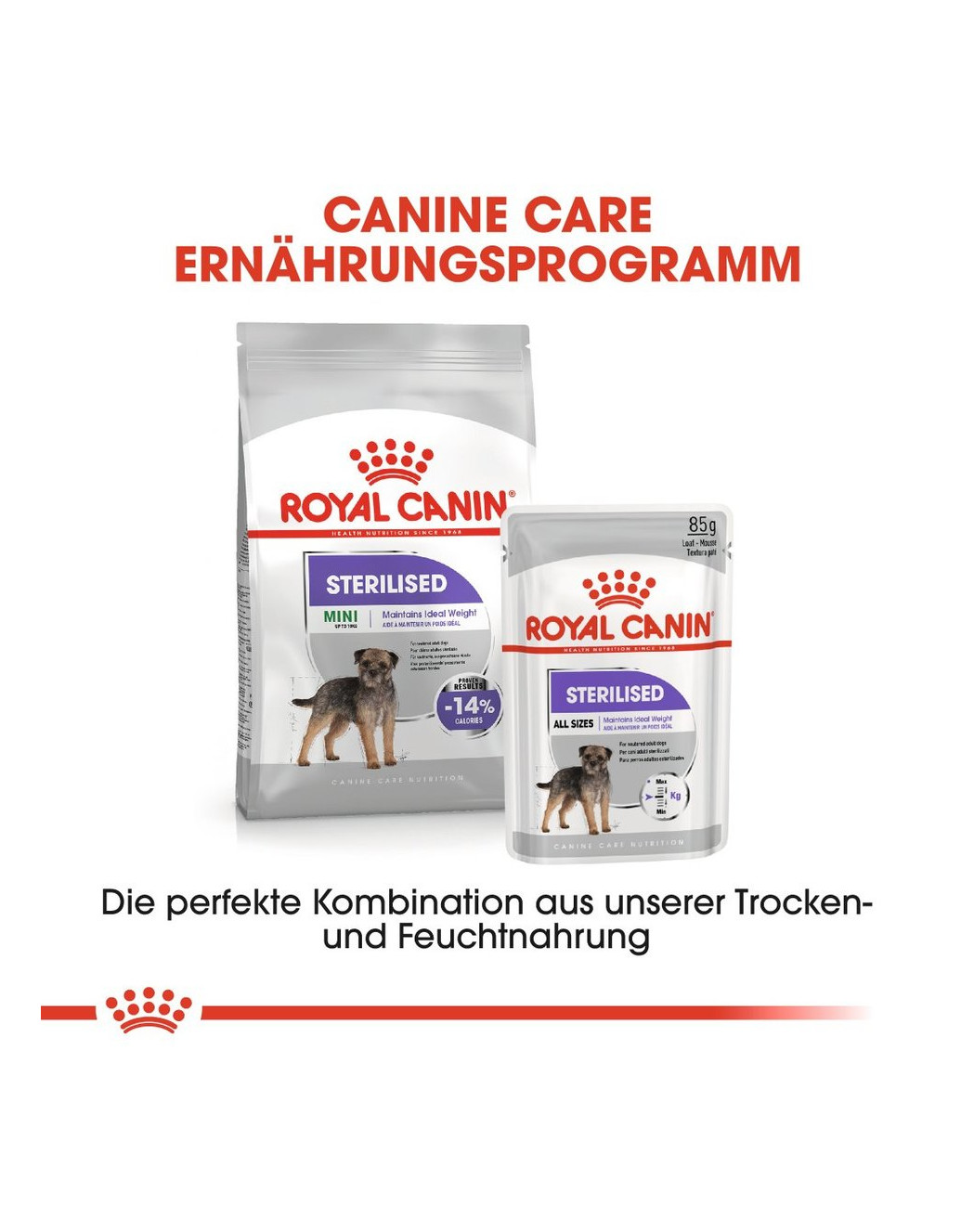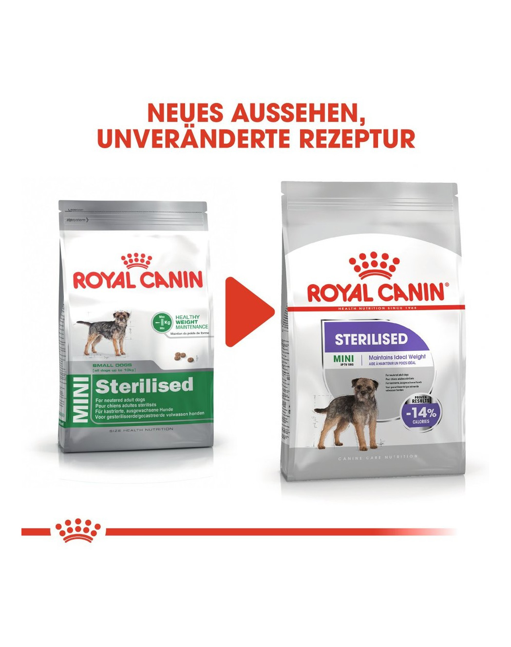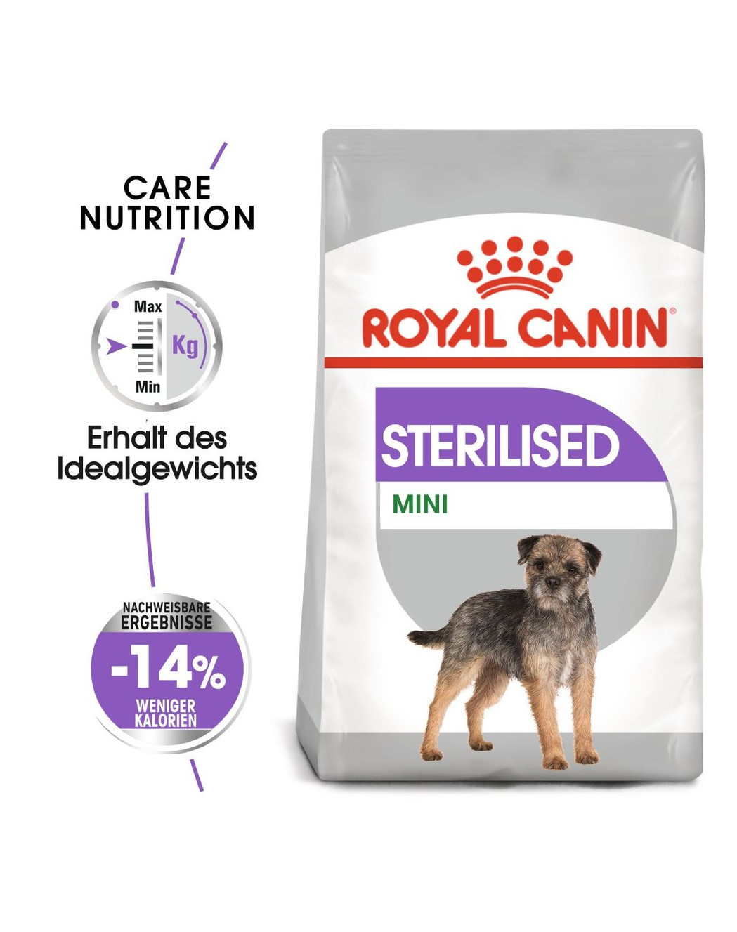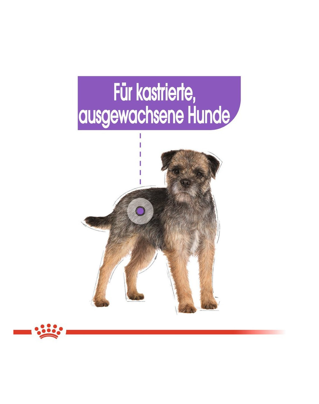 Croquettes pour les chiens castrés/stérilisés de petites races (1-10 kg), apport modéré en graisses et teneur élevée en protéines pour maintenir le poids de forme, nutriments et fibres de qualité.