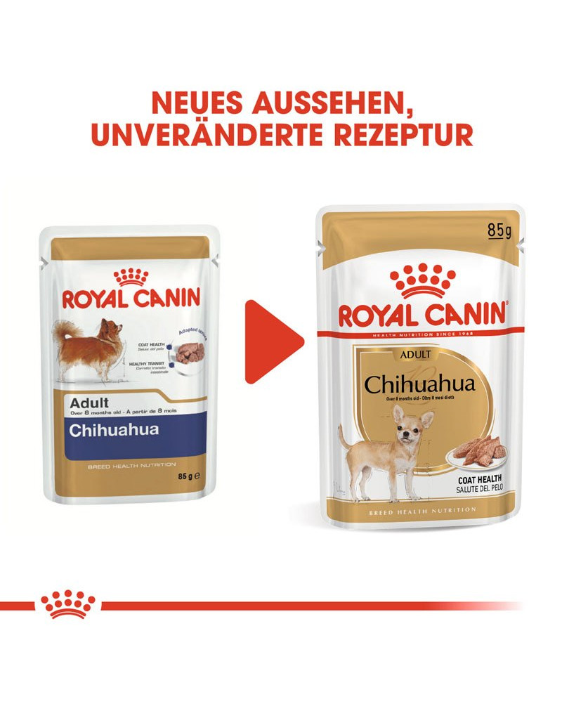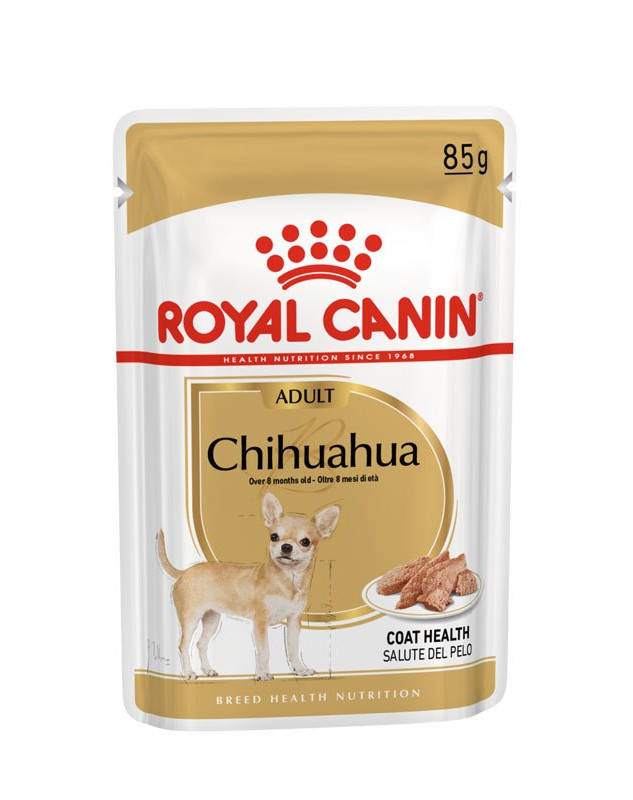 Les aliments humides ROYAL CANIN® Chihuahua Adult ont été spécialement formulés pour les chiens adultes, âgés de plus de 8 mois, de la race Chihuahua.