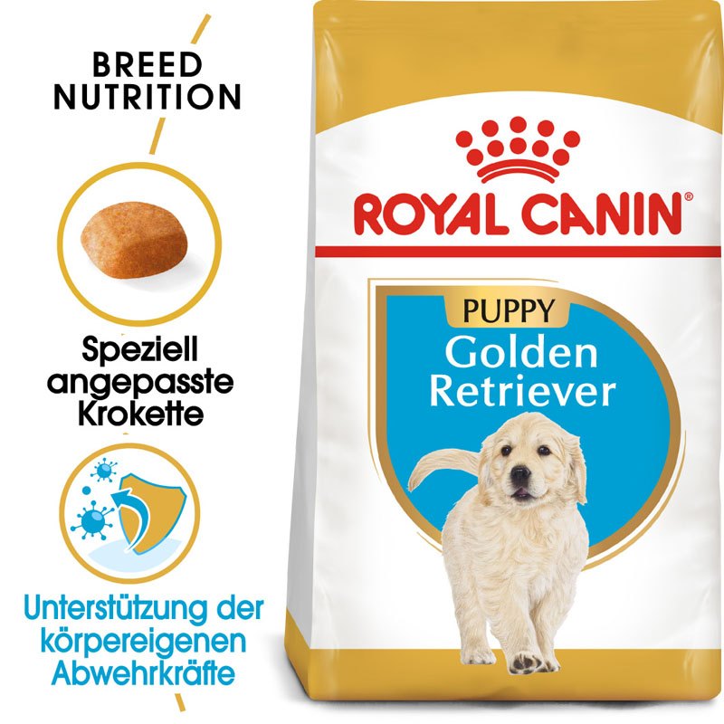 ROYAL CANIN® Golden Retriever Puppy est spécialement conçu pour répondre à tous les besoins nutritionnels de votre jeune Golden Retriever, et convient aux chiots de moins de 15 mois. Au cours de cette phase clé de croissance, le système immunitaire de votre chiot se développe peu à peu : c’est pourquoi ROYAL CANIN® Golden Retriever Puppy contient un complexe d’antioxydants afin de renforcer les défenses naturelles de votre chiot pour l’aider à rester en pleine santé pendant sa croissance.