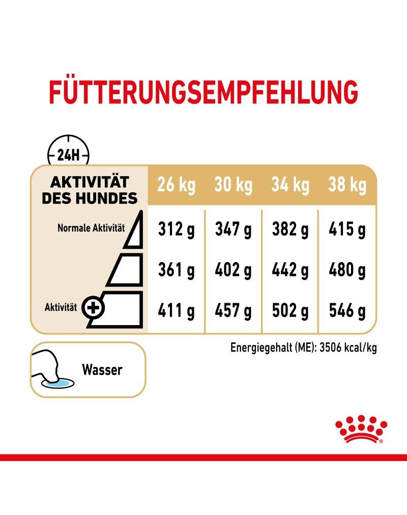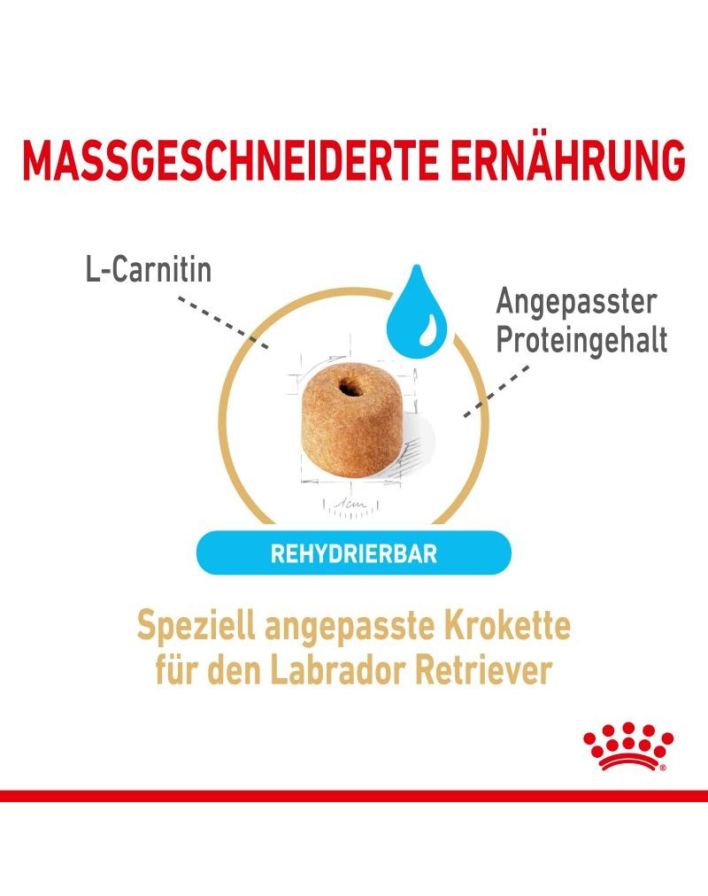 Avec l'âge, l'activité des chiens Labrador Retriever diminue. La formulation spéciale de l'aliment, avec sa teneur appropriée en graisses et en calories, contribue à maintenir le poids corporel normal des chiens âgés de cette race. L'aliment contribue également au maintien de la masse musculaire, grâce à sa teneur optimale en protéines et à l'ajout de L-carnitine.