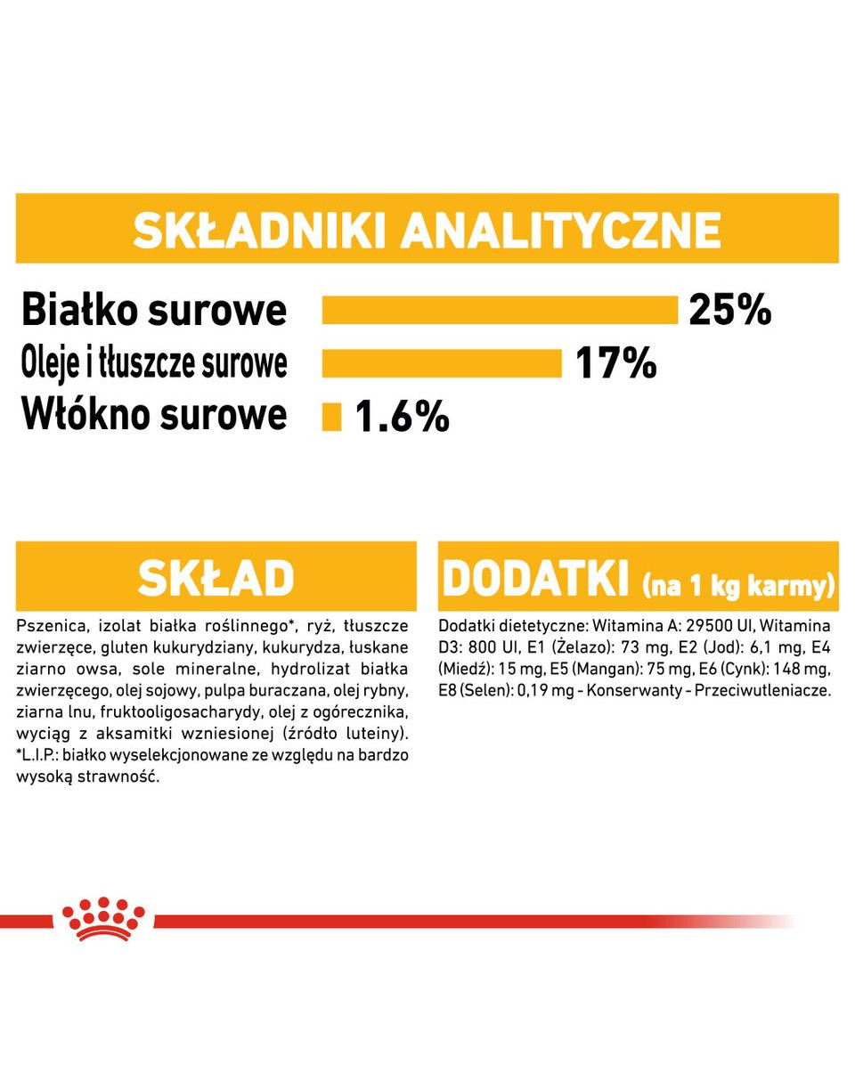 Les aliments ROYAL CANIN® Maxi Dermacomfort contiennent des nutriments actifs pour favoriser la santé de la peau de votre chien. La formule est enrichie en acides gras oméga 3 et oméga 6 qui aident à apaiser les irritations et à protéger la peau, réduisant ainsi sa sensibilité aux facteurs environnementaux nocifs. Ces ingrédients favorisent également un pelage sain et beau. Royal Canin prend très au sérieux la sélection des matières premières, notamment des protéines. Seules les protéines de la plus haute qualité sont utilisées, adaptées aux besoins spécifiques de chaque chien.
