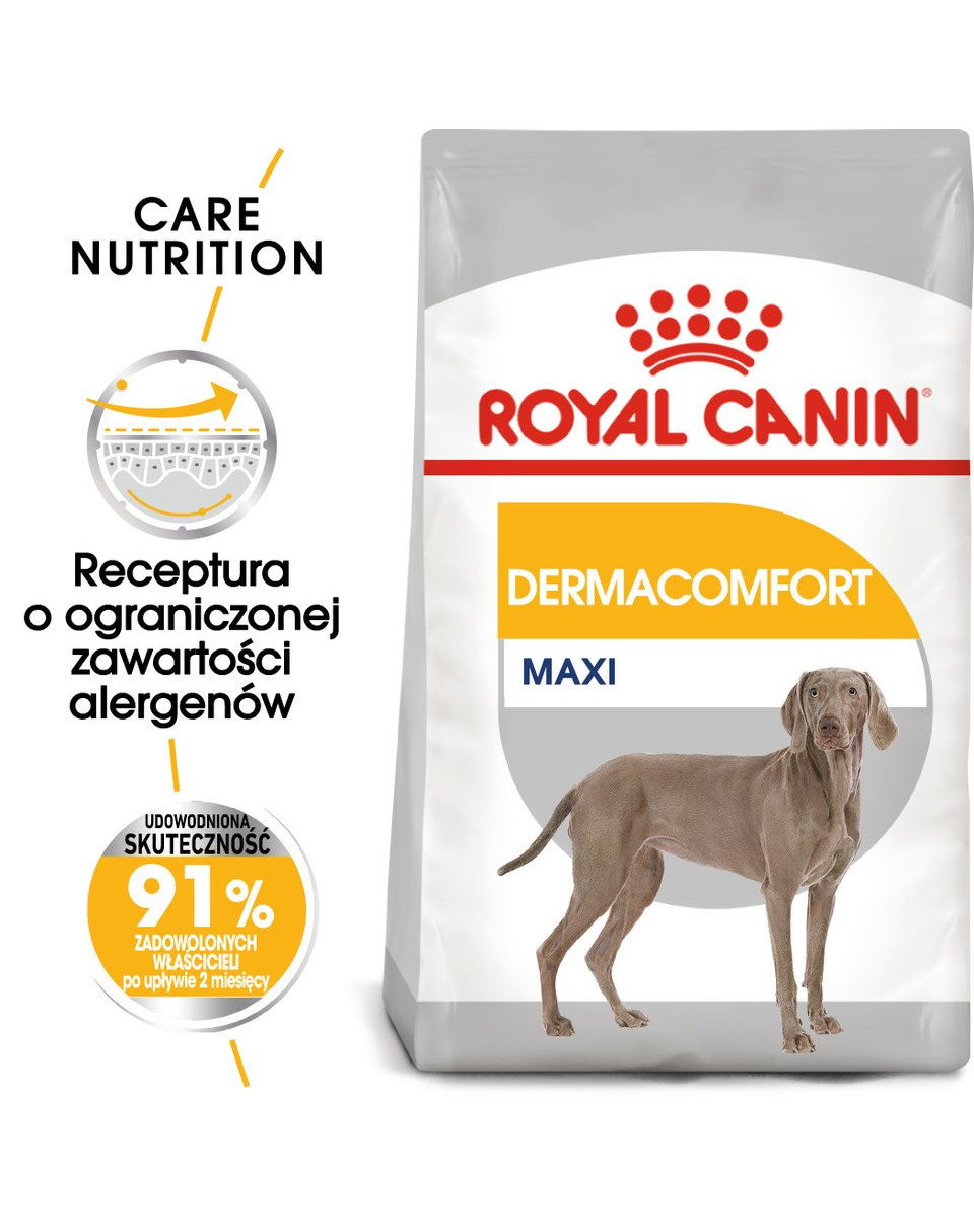 ROYAL CANIN CCN Maxi Dermacomfort 12 kg de croquettes pour chiens adultes, grandes races, à la peau sensible et irritable.