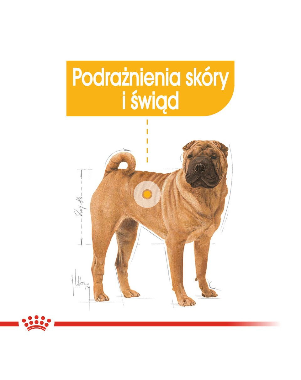 Aliment complet pour chiens adultes et seniors (plus de 15 mois), races de la taille medium (poids corporel de 11 à 25 kg), sujets aux irritations cutanées et au grattage.