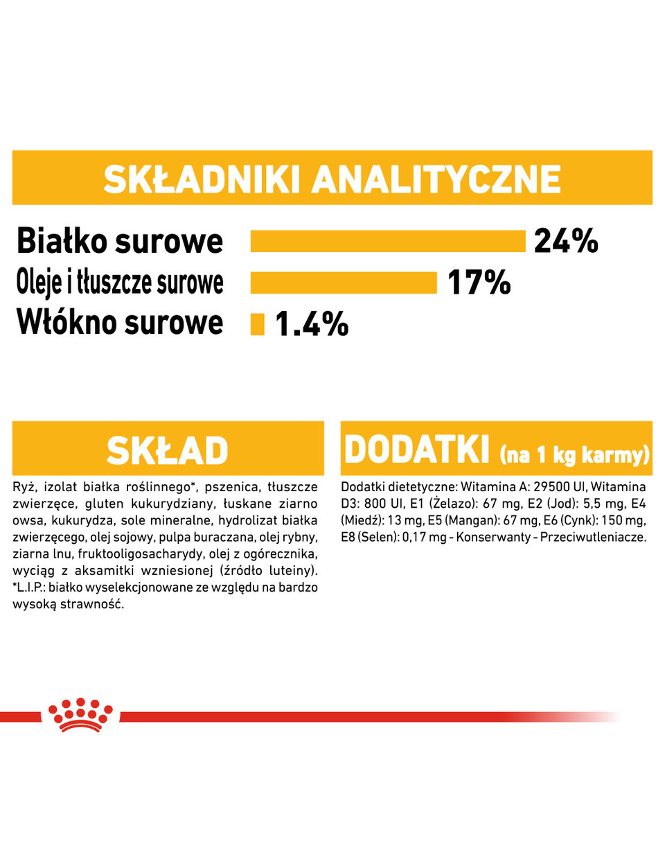 Les aliments ROYAL CANIN® Medium Dermacomfort contiennent des nutriments actifs pour favoriser la santé de la peau de votre chien. La formule est enrichie en acides gras oméga 3 et oméga 6 qui aident à apaiser les irritations et à protéger la peau, réduisant ainsi sa sensibilité aux facteurs environnementaux nocifs. Ces ingrédients favorisent également un pelage sain et beau. Royal Canin prend très au sérieux la sélection des matières premières, notamment des protéines. Seules les protéines de la plus haute qualité sont utilisées, adaptées aux besoins spécifiques de chaque chien.