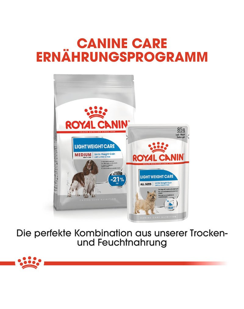 Adapté aux chiens adultes pesant entre 11 et 25 kg, ROYAL CANIN® Light Weight Care Medium aide à prévenir le surpoids.