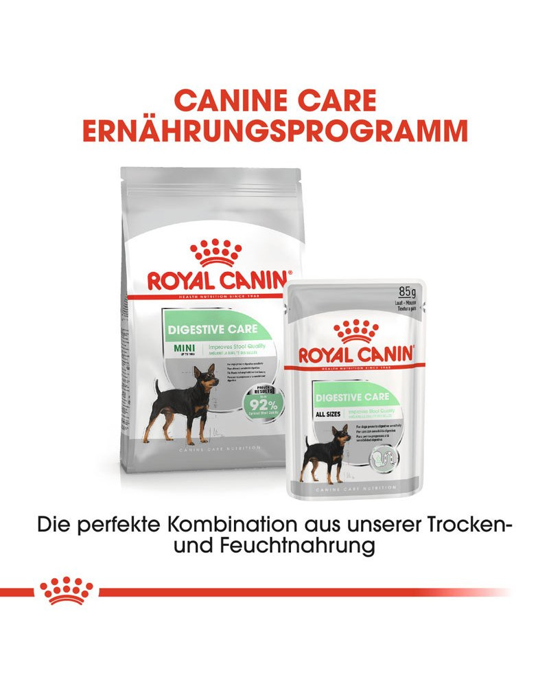 ROYAL CANIN® Digestive Care Mini est un aliment très appétissant pour les chiens pesant jusqu'à 10 kg, spécialement formulé pour les chiens au appareil digestif sensible.