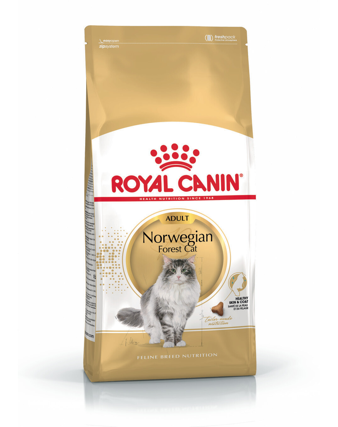 Croquettes pour chat adulte des Forêts Norvégiennes, contribuent à la beauté du pelage, à la santé des os et des articulations, à l'équilibre de la flore intestinale et des voies urinaires.