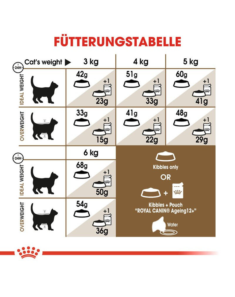 L'alimentation aide à maintenir la vitalité chez les chats de plus de 12 ans en ajoutant des acides gras et un complexe breveté de co-antioxydants (vitamines, lycopène, thé vert, polyphénols de raisin) protégeant les cellules contre les effets des radicaux libres.