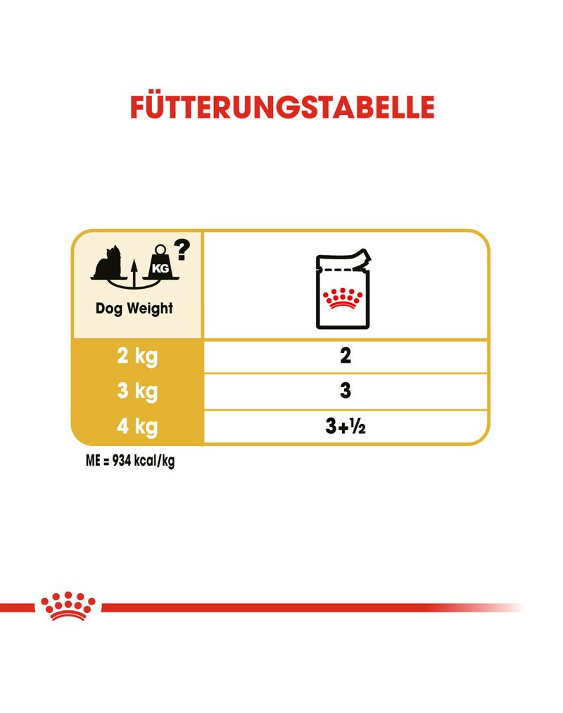 La mission de ROYAL CANIN® est de fournir des solutions nutritionnelles adaptées aux besoins de votre animal. Tous nos produits subissent de nombreux contrôles de qualité pour répondre aux normes les plus élevées de la marque et fournir une alimentation adaptée aux besoins nutritionnels et au mode de vie de votre chien. ROYAL CANIN® Yorkshire Terrier Adulte sous forme de pâté est un aliment complet pour animaux de compagnie.