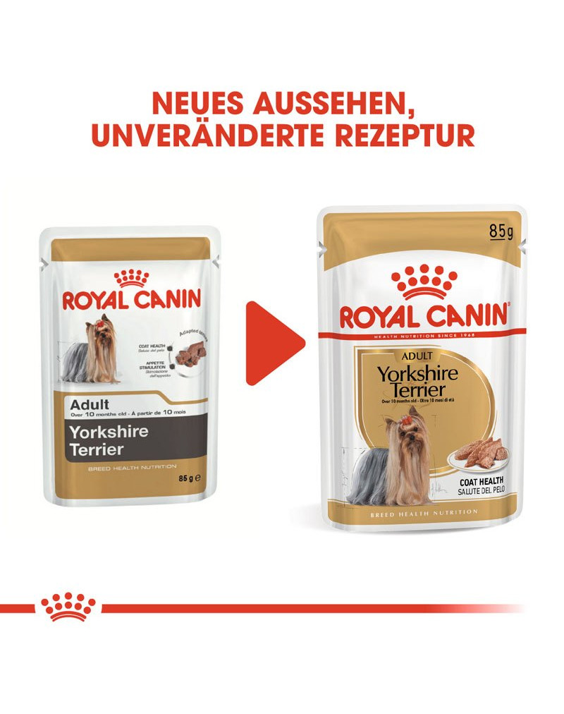 Les pâtées ROYAL CANIN® Yorkshire Terrier Adult ont été spécialement conçues pour les chiens adultes de la race yorkshire terrier âgés de plus de 10 mois.