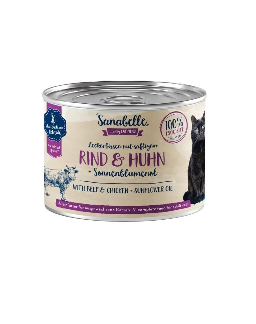 Bœuf frais (30%), bouillon de bœuf (30%), poulet frais (14%), poumons frais (12%), cou de canard frais (5%), cœurs frais (4%), foie frais (3%), minéraux (1%), huile de tournesol (1%).