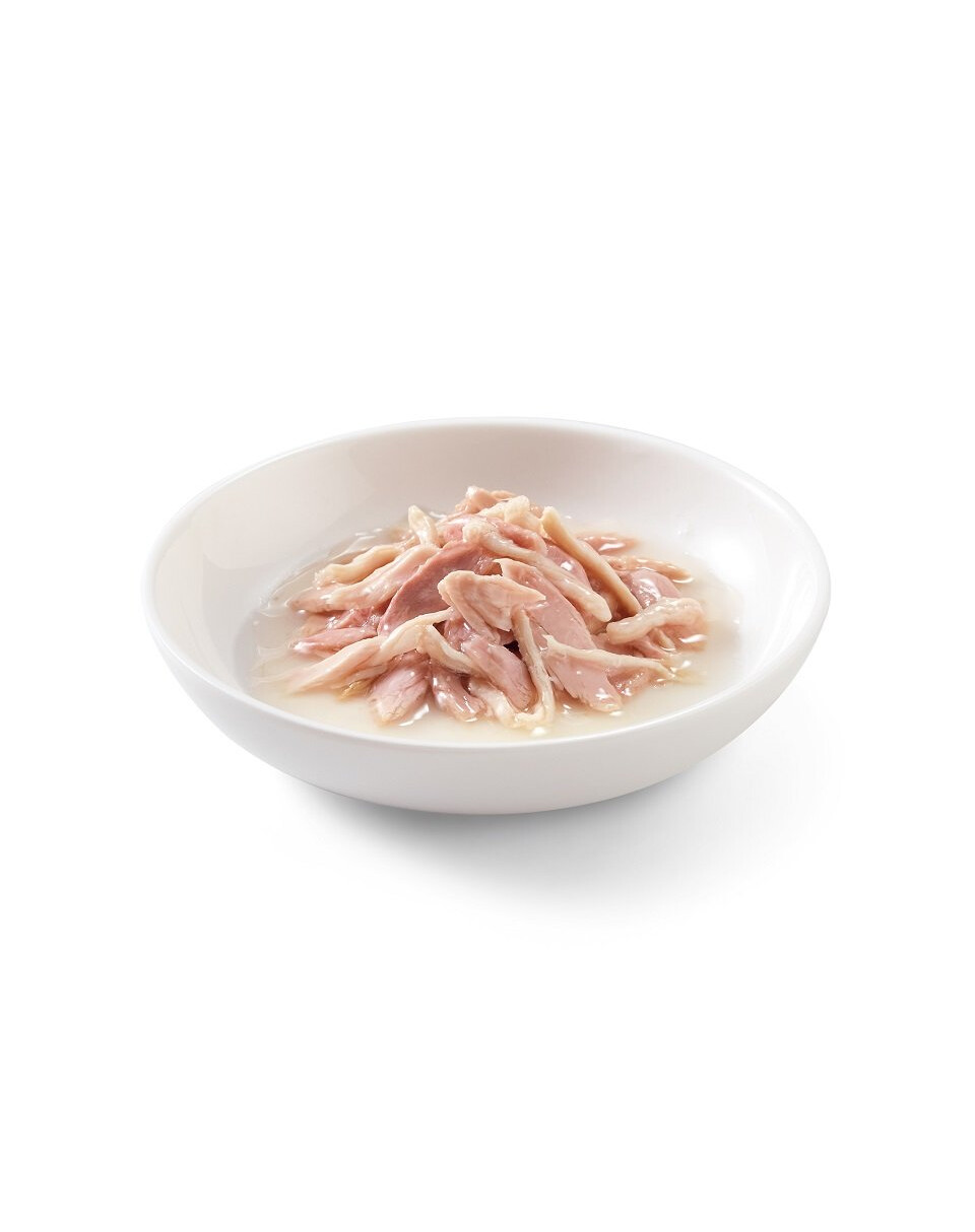 Cette nourriture raffinée a été conçue pour les chats qui apprécient la simplicité et la qualité. De véritables filets de thon associés à de la viande de poulet sont cuits à la vapeur et servis dans un bouillon savoureux, qui contribue à l’hydratation naturelle de l’organisme. La recette repose uniquement sur quelques ingrédients naturels soigneusement sélectionnés, sans conservateurs, colorants artificiels ni exhausteurs de goût.