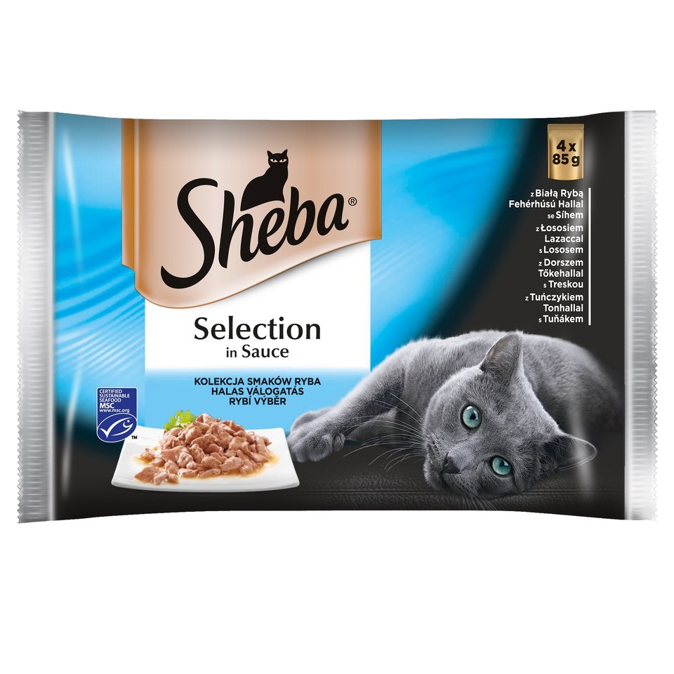 Le set de sachets d'aliments humides SHEBA® Selection in Sauce comprend 4 délicieuses saveurs de poisson : au poisson blanc, au saumon, au cabillaud et au thon. Votre chat adorera ce mélange luxueux de morceaux de nourriture soigneusement préparés et trempés dans une sauce délicate. Il la goûtera une fois et en redemandera. L'aliment complet SHEBA® Selection in Sauce fournit à votre animal adulte des nutriments essentiels, présentés dans un sachet pratique. Cette forme d'emballage garantit qu'il y a toujours une portion fraîche d'un plat délicieux.