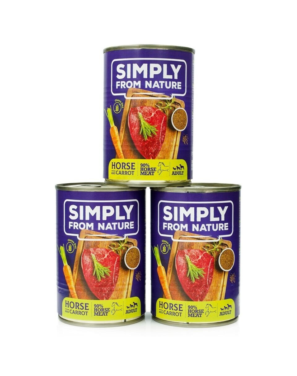 SIMPLY FROM NATURE - Pâtée de viande de cheval, graine de lin et carottes pour chiens - 3 x 400 g