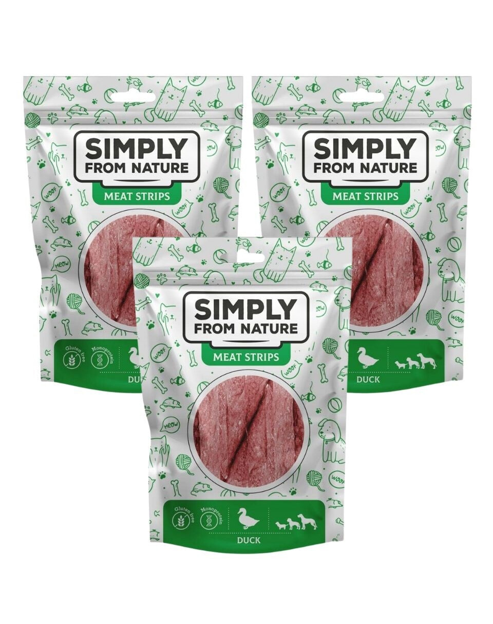 SIMPLY FROM NATURE Meat Strips - Bandes de viande de canard pour chiens - 3x80 g