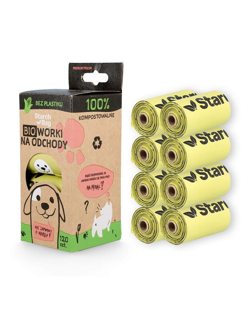 STARCH BAG Sacs compostables BIO pour matières fécales 8 rouleaux x 15 pièces, couleur verte