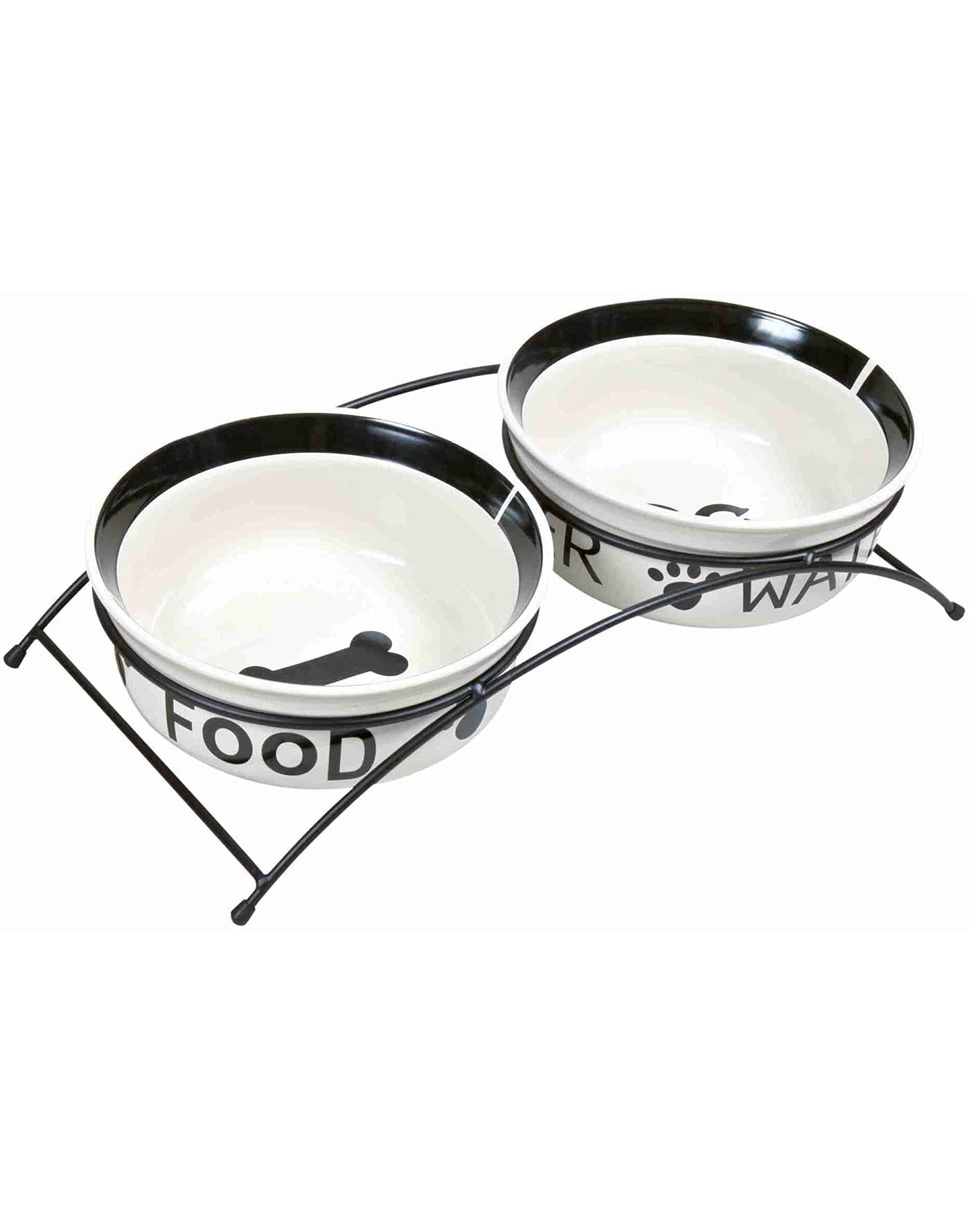 Élégantes gamelles en céramique sur un support. Les pieds en caoutchouc antidérapants assurent la stabilité. Les gamelles sont lourdes, ce qui les rend plus difficiles à déplacer. Les gamelles se retirent du support pour un nettoyage facile.