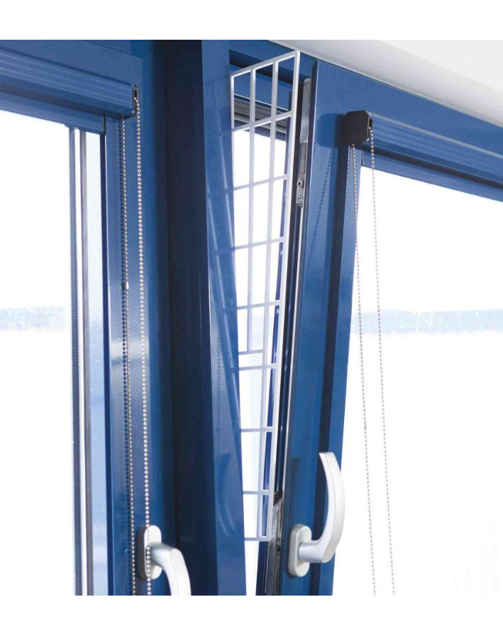 Grille de sécurité pour fenêtre. Être vissé ou collé. Construction légère, résistante aux perforations. Pour fixer les côtés de la fenêtre.