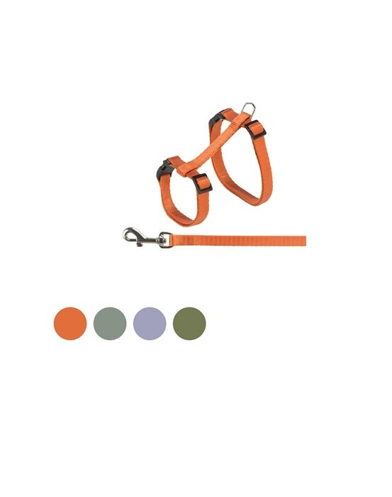 Harnais pour chat réglable avec sangle et boucle de sécurité qui s'ouvre facilement en cas de besoin.