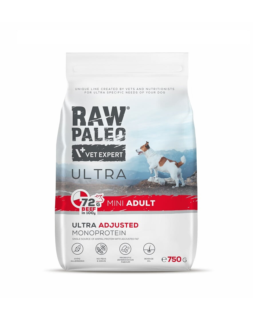 VETEXPERT RAW PALEO Ultra Beef Mini Adult - Croquettes de viande de bœuf pour chiens adultes de petites races - 750g