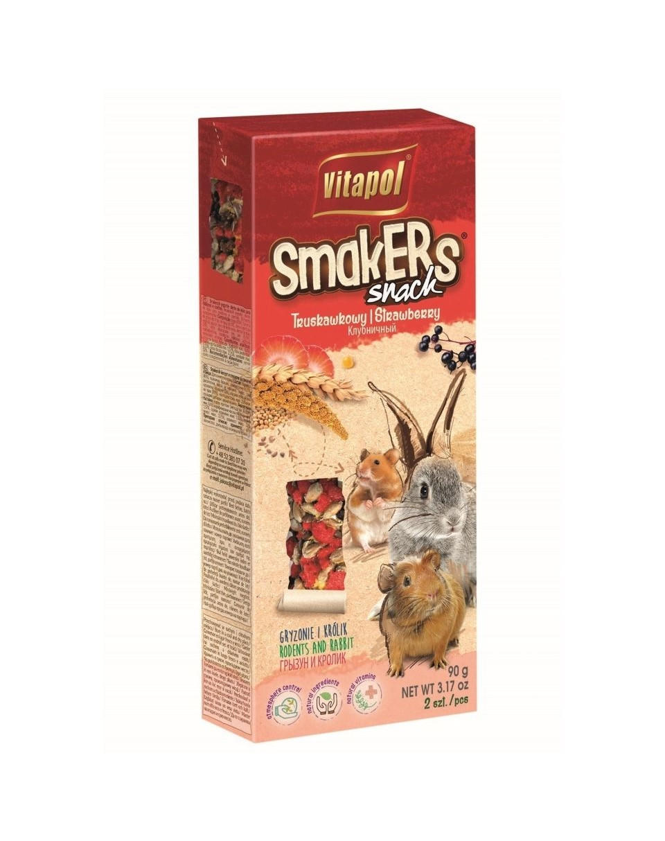 Les flocons apportent de la variété et complètent l'alimentation des rongeurs et des lapins. L'ingrédient principal est la fraise, accompagnée de framboises et de baies de sureau. La fraise contient des fibres, des vitamines C, B1, B2, B3 et A, ainsi que des minéraux (calcium, phosphore, magnésium, fer et manganèse). Ils contiennent des sucres facilement digestibles. Il a des effets fortifiants, astringents, anti-diarrhéiques, hématopoïétiques, diurétiques, fortifiants et anticancéreux. La présence de lin a un bon effet sur le tube digestif en régulant la digestion.