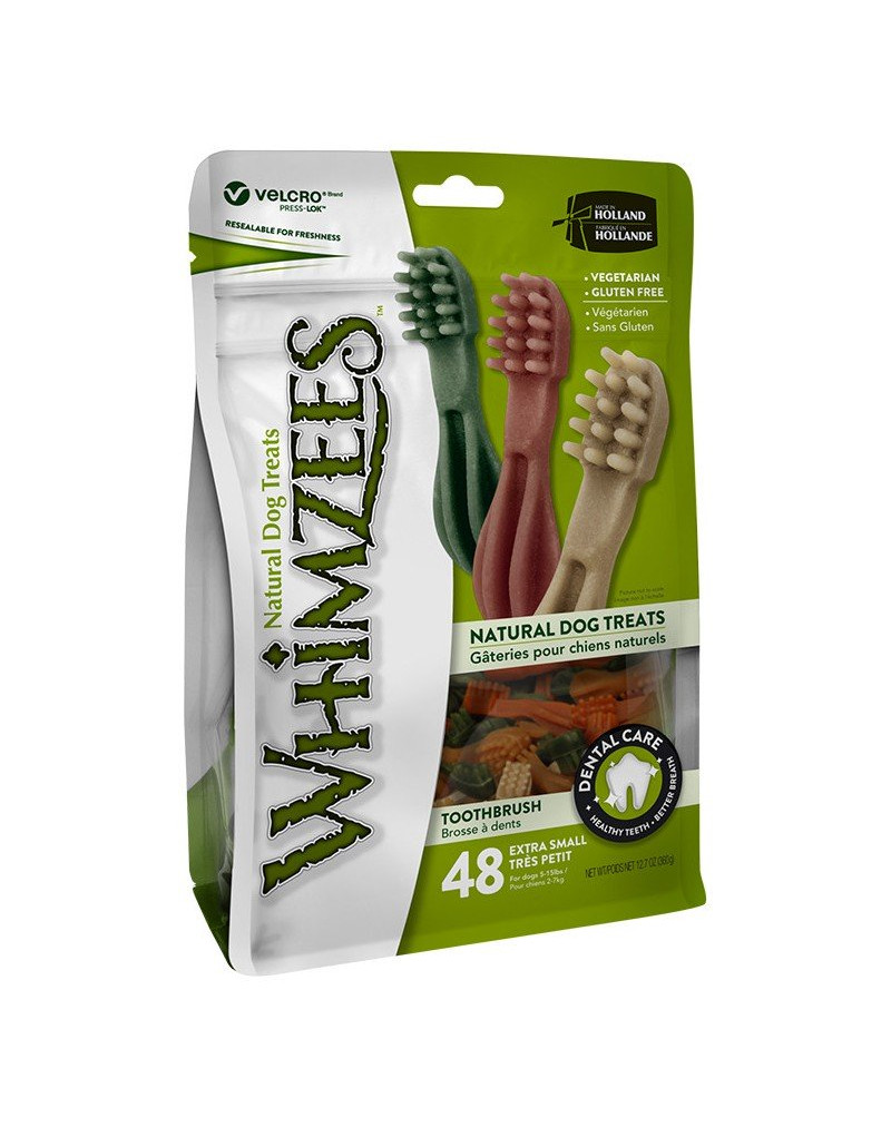 Les produits à mâcher WHIMZEES en forme de brosse à dents sont végétariens et naturels, entièrement comestibles et faciles à digérer. Elles ne contiennent pas de gluten et conviennent donc parfaitement aux chiens sensibles.