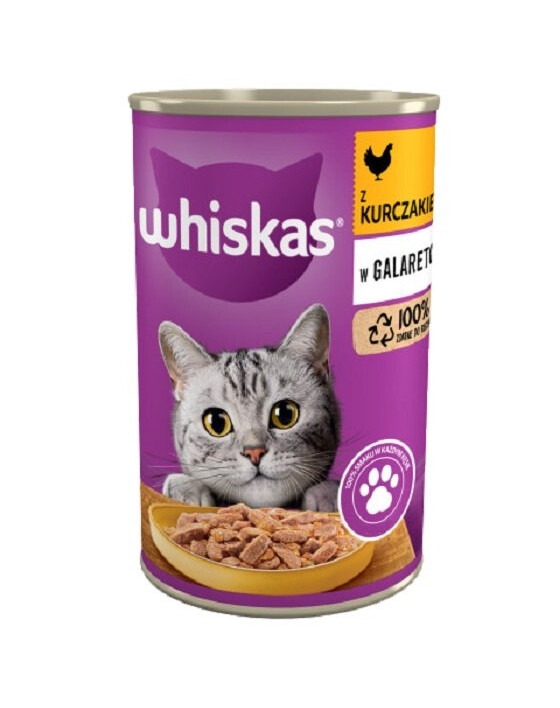 Whiskas - chunks with chicken est une nourriture humide complète dont les chats raffolent. Les savoureux repas en gelée ont été soigneusement formulés pour donner à votre ami félin tout ce dont il a besoin pour ronronner. La recette complète et équilibrée contient du zinc pour soutenir la santé de la peau et du pelage, et le bon équilibre des minéraux aide à prendre soin de la santé des voies urinaires de votre chat. La nourriture Whiskas permet à votre chat d'être heureux, en bonne santé et désireux de venir dans son bol à chaque fois à l'heure du repas.