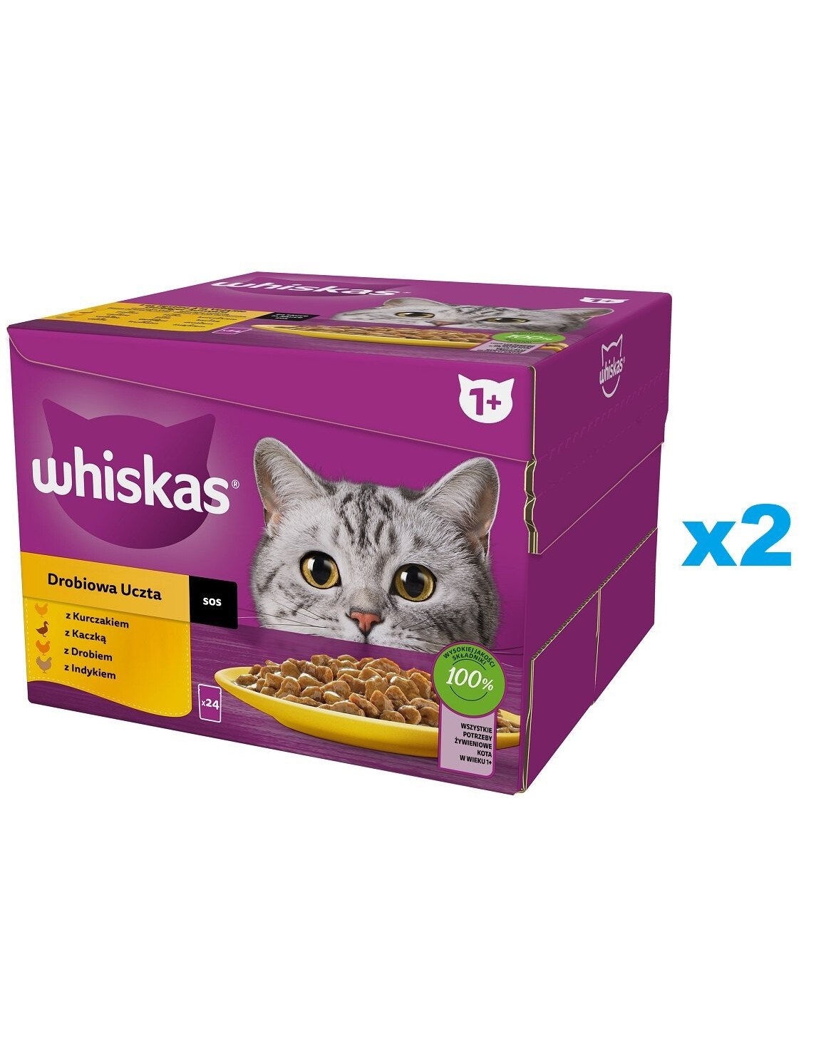 WHISKAS Adult Poultry Piece en sauce 48x85 g morceaux avec poulet, canard, volaille, dinde pour chats adultes