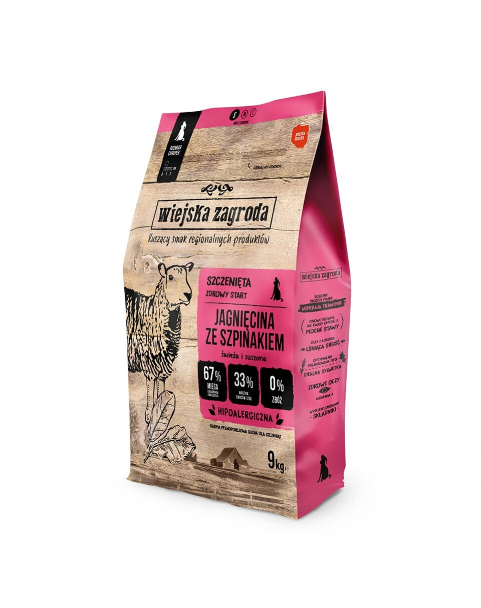 WIEJSKA ZAGRODA Jagnięcina ze szpinakiem karma dla szczeniąt chrupki S 9 kg