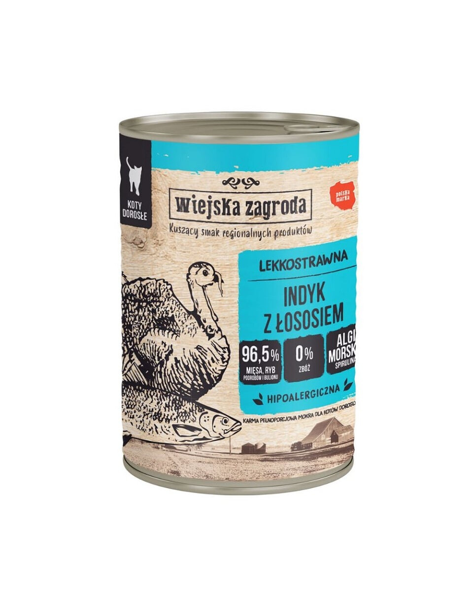 WIEJSKA ZAGRODA Indyk z łososiem mokra karma dla kotów 400 g