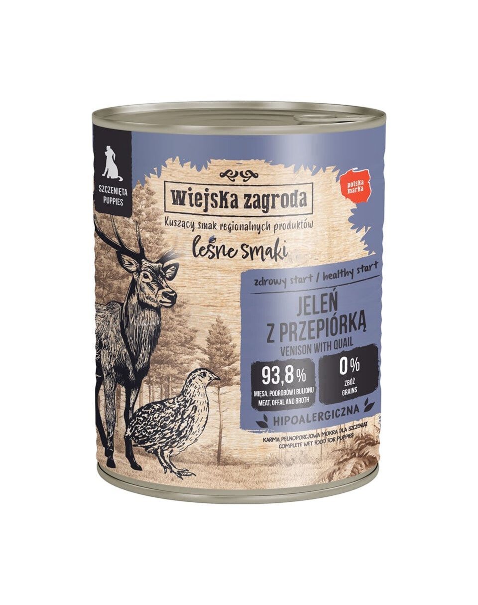 WIEJSKA ZAGRODA Leśne smaki Jeleń z przepiórką mokra karma dla szczeniąt 800 g
