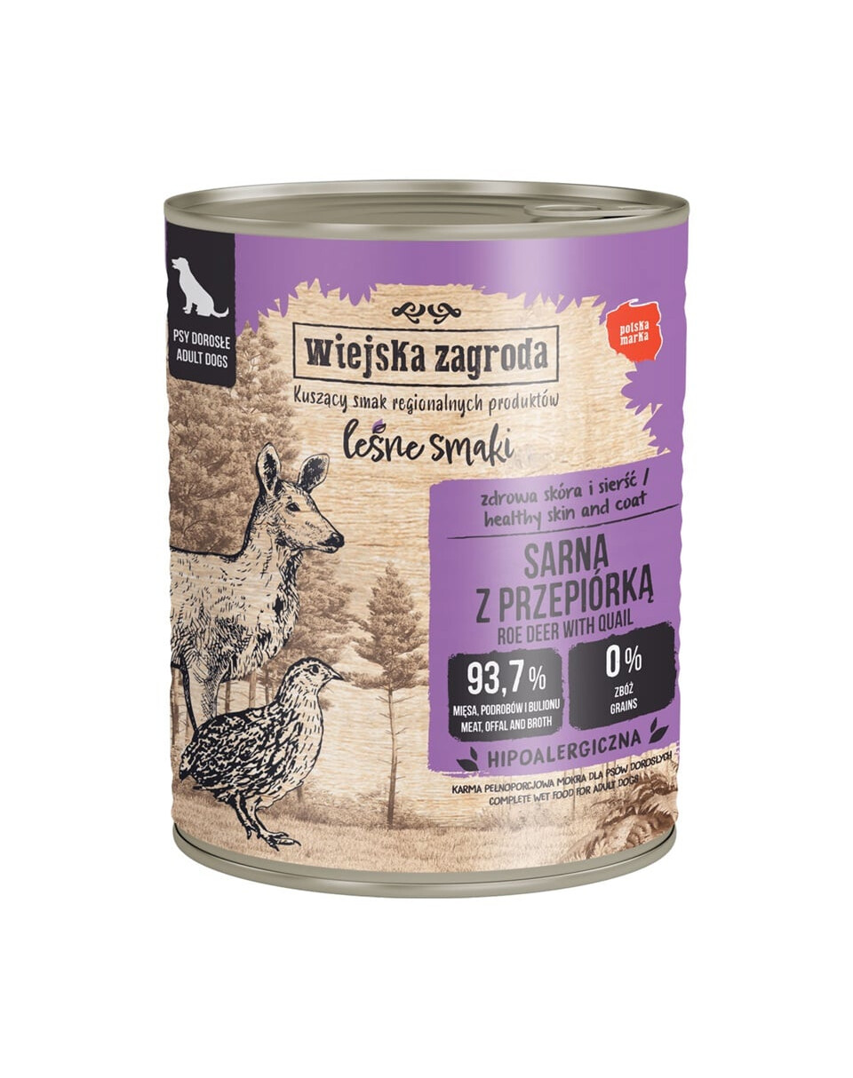 WIEJSKA ZAGRODA Leśne smaki Sarna z przepiórką mokra karma dla psów 800 g