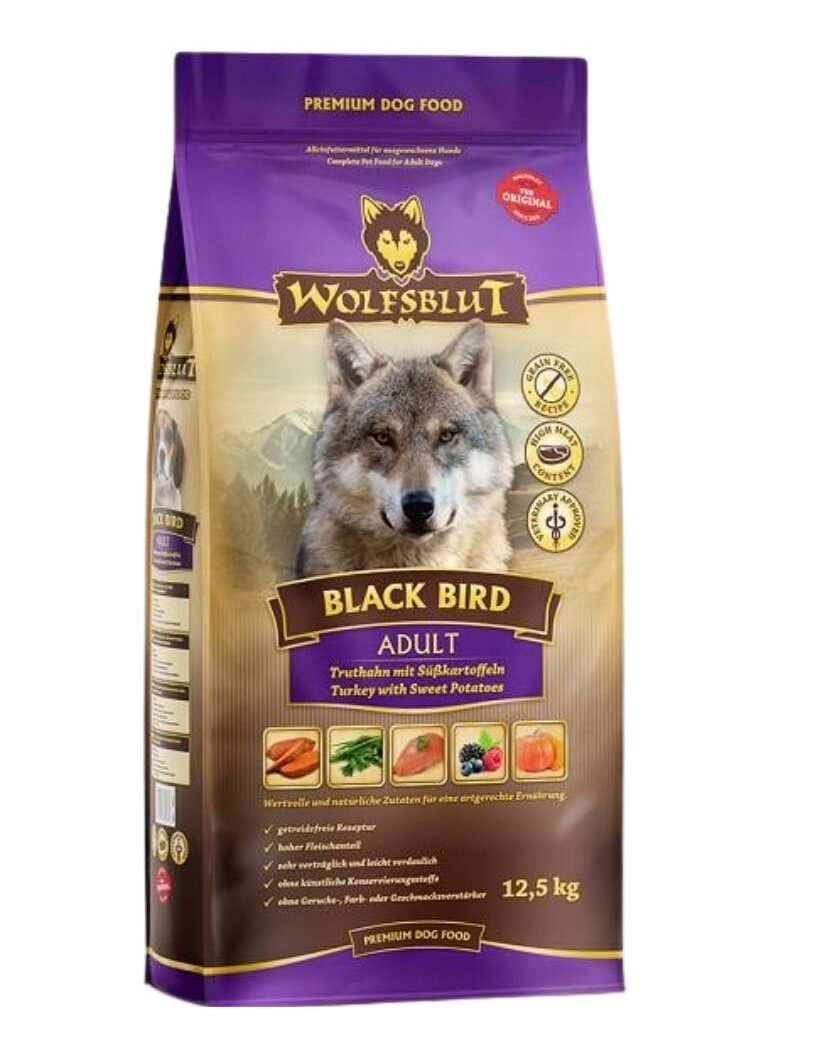 WOLFSBLUT BLACK BIRD ADULT aliment sec complet pour chiens adultes avec de la dinde, dans lequel l'alimentation ancestrale est combinée avec les besoins modernes de votre chien. Cela permet à votre chien de bénéficier chaque jour d'une alimentation naturelle et adéquate.