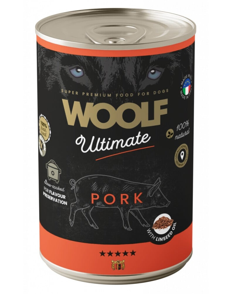 WOOLF Ultimate Adult Dog Pork and Linseed Oil 400g wilgotna karma z wieprzowiną i olejem lnianym dla psów