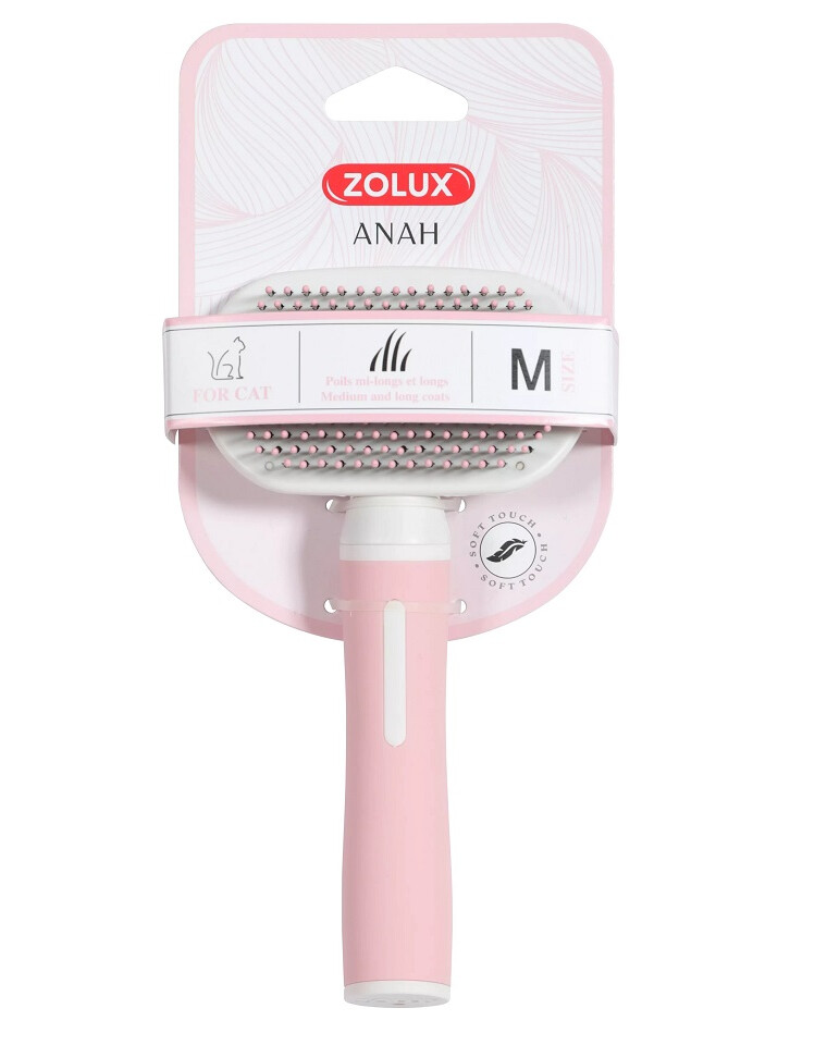 - ZOLUX ANAH Soft cat brush medium - pour un brossage doux du sous-poil, grâce aux aiguilles flexibles dont les extrémités en plastique protègent la peau du chat des irritations